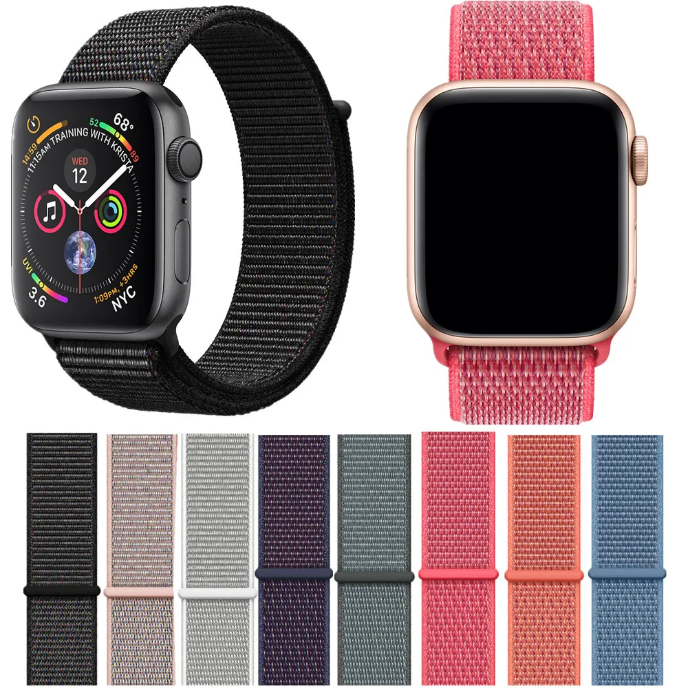 2018 Nova Nylon Loop para A Apple Relógio Series4 40mm/44mm Macio Respirável Tecido Nylon Strap Fit For relógio maçã Series3 38mm/42mm