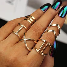 5 pçs/set Classic Gold Cor V Chevron Anéis Conjunto Anel Irregular Geométrica Senhora Traje Charme Acessórios Jóias Anéis Midi