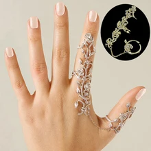 Meetcute Hot-Selling Occident Mulheres Chic Alloy + Strass Cristal Brilhante Anel Floral Partido Celebridade Ligação Completa 2 Dedo anéis