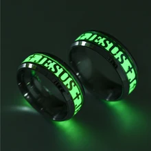 Trendy JESUS Luminosa Carta Anel Masculino de Aço Inoxidável Faixas de Casamento Do Anel de Casamento Para As Mulheres Brilham No Escuro DH-048