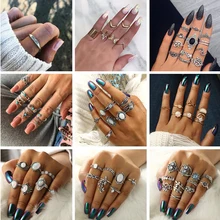 Docona Geométrica Anéis Set para As Mulheres Carta de Prata Antigo Esculpido À Mão Flower Knuckle Midi Anéis Conjunto de Jóias Boêmio